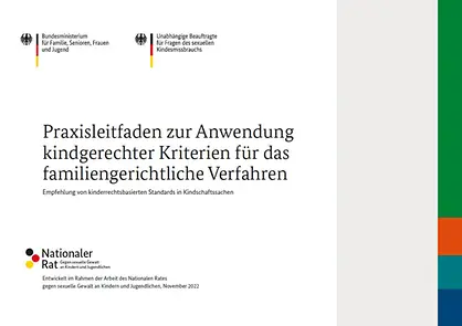 Am 10. November haben das Bundesfamilienministerium und der Nationale Rat gegen sexuelle Gewalt an Kindern und Jugendlichen den gemeinsam entwickelten "Praxisleitfaden zur Anwendung kindgerechter Kriterien für das familiengerichtliche Verfahren" veröffentlicht. Im Nationalen Rat gegen sexuelle Gewalt an Kindern und Jugendlichen arbeiten Vertreterinnen und Vertreter aus Politik und Wissenschaft, Zivilgesellschaft und Fachpraxis sowie Betroffene in der Arbeitsgruppe "Kindgerechte Justiz" daran, Gerichtsverfahren für gewaltbetroffene Kinder und Jugendliche kindgerechter und sensibel zu gestalten.