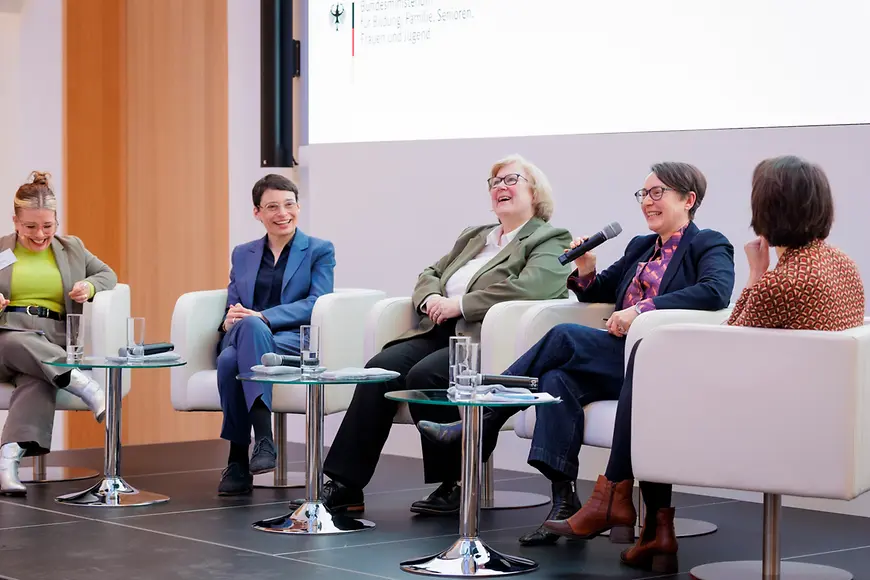 Anschließend diskutieren die nordrhein-westfälische Gleichstellungsministerin Josefine Paul, die Direktorin des Deutschen Instituts für Menschenrechte, Prof. Dr. Beate Rudolf, die Vorsitzende des Deutschen Frauenrats, Dr. Beate von Miquel und die Direktorin der Bundesstiftung Gleichstellung, Lisi Maier, bei einer Podiumsdiskussion zum Thema "40 Jahre Ratifizierung der CEDAW in Deutschland – wo stehen wir?"